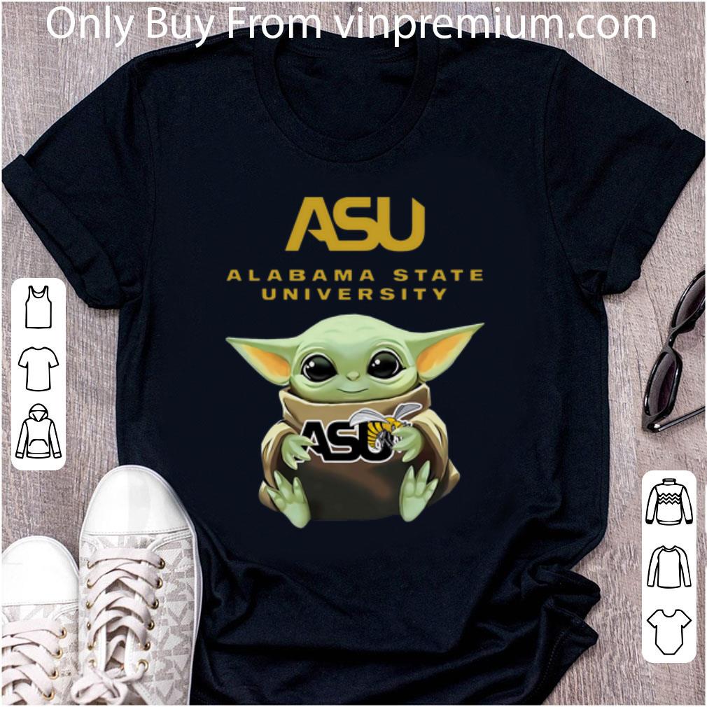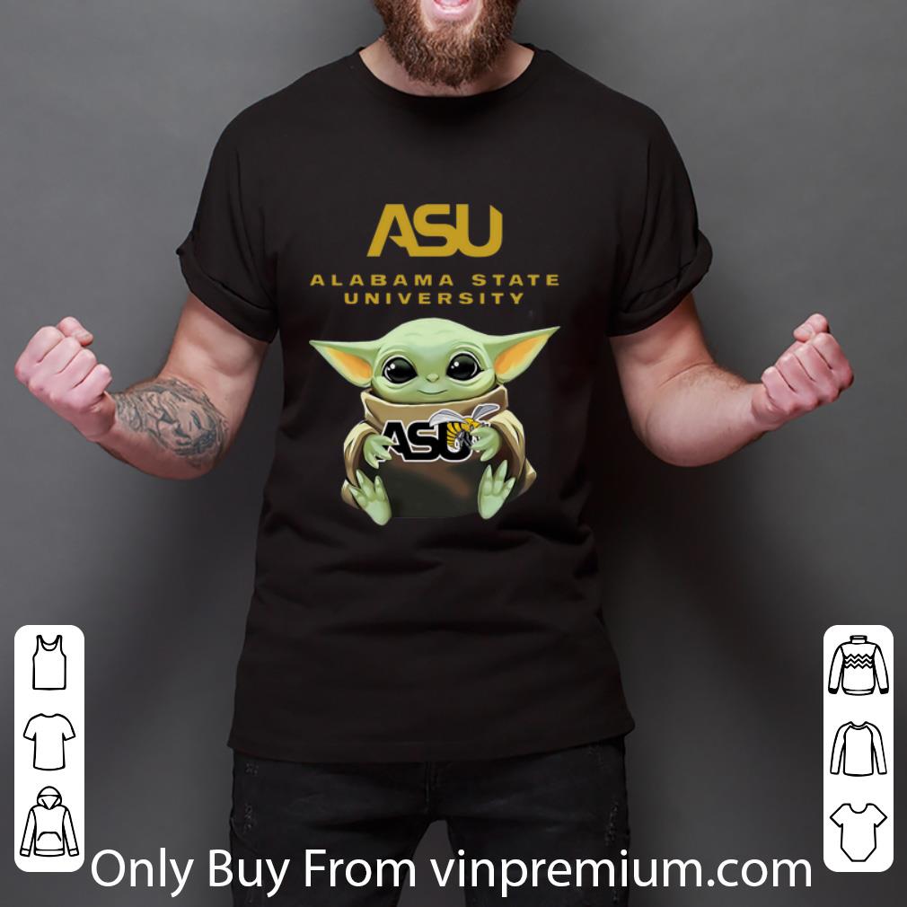 Pretty Star Wars Baby Yoda Hug Alabama State University shirt, Hoodie, Sweater, Longsleeve T-Shirt For Men and Women